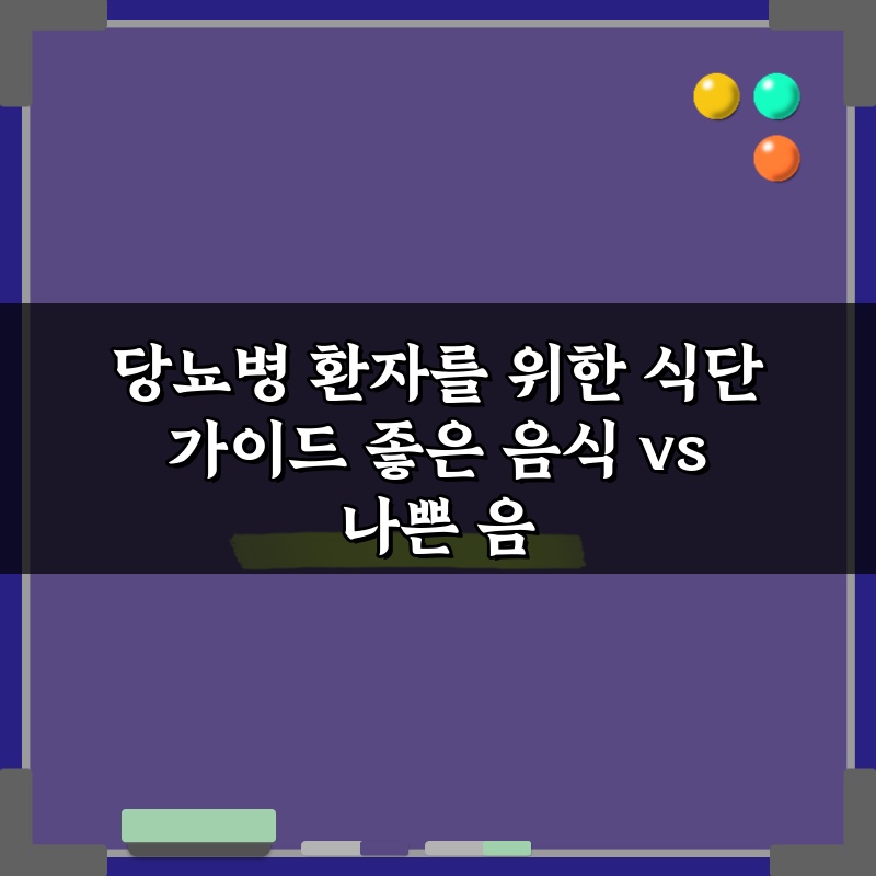 당뇨병 환자를 위한 식단 가이드! 좋은 음식과 나쁜 음식을 구분해 건강한 식습관을 유지하세요. 지금 클릭하여 올바른 선택을 확인해보세요!