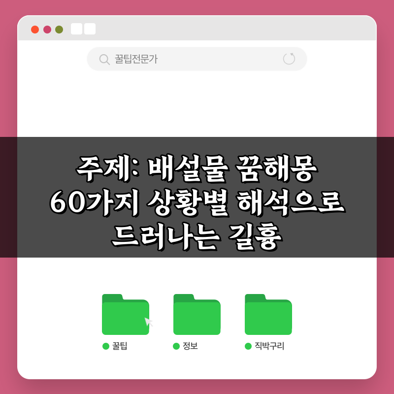 배설물 꿈해몽의 60가지 상황별 해석을 통해 길흉을 알아보세요. 당신의 꿈이 전하는 메시지를 확인하고, 뜻밖의 운세를 발견해보세요!