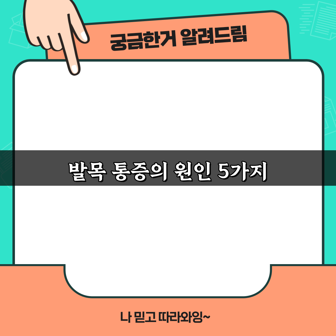 발목 통증의 원인 5가지 2026년 02월 08일 작성자: 인포 발목 통증의 원인 5가지를 알아보세요. 통증의 원인을 이해하면 효과적인 예방과 치료가 가능합니다. 지금 확인해보세요!