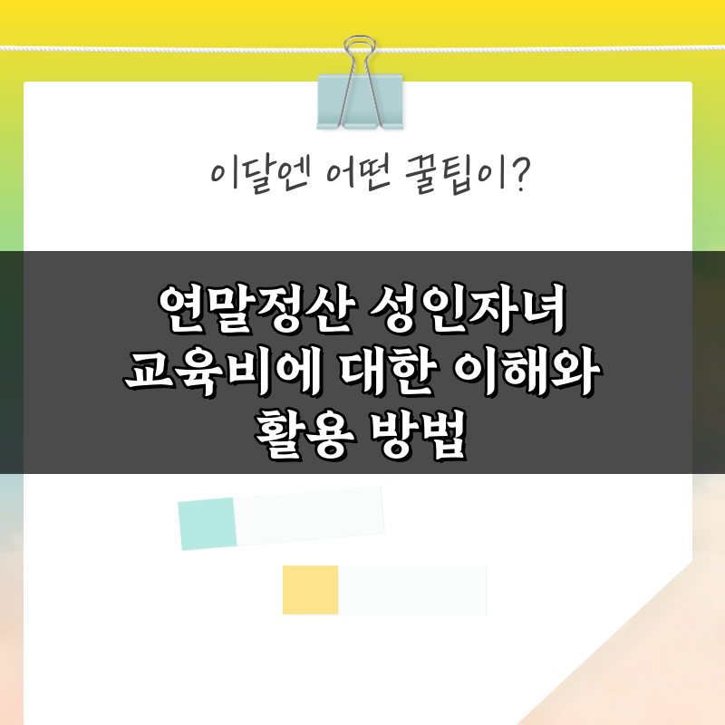 연말정산 성인자녀 교육비에 대한 이해와 활용 방법 2026년 02월 08일 작성자: 인포 연말정산에서 성인자녀의 교육비 공제 혜택을 이해하고 활용하는 방법을 알아보세요. 절세 팁과 필수 정보가 담겨 있습니다!