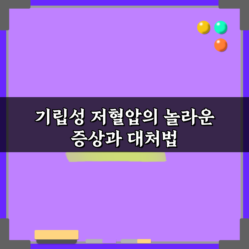 기립성 저혈압의 놀라운 증상과 대처법을 알아보세요! 일상에서 쉽게 겪을 수 있는 이 증상에 대한 효과적인 대처법을 소개합니다. 지금 클릭하여 건강을 지키세요!