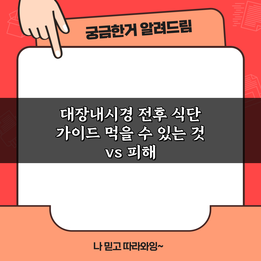 대장내시경 전후 식단 가이드를 통해 먹을 수 있는 음식과 피해야 할 음식을 알아보세요. 건강한 준비와 회복을 위한 필수 정보!