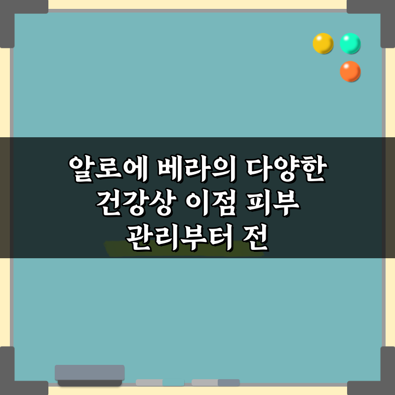 알로에 베라의 다양한 건강상 이점 피부 관리부터 전 2026년 02월 08일 작성자: 인포 알로에 베라는 피부 관리부터 소화 개선까지 다양한 건강상 이점을 제공합니다. 이 자연의 슈퍼푸드로 건강을 챙겨보세요!