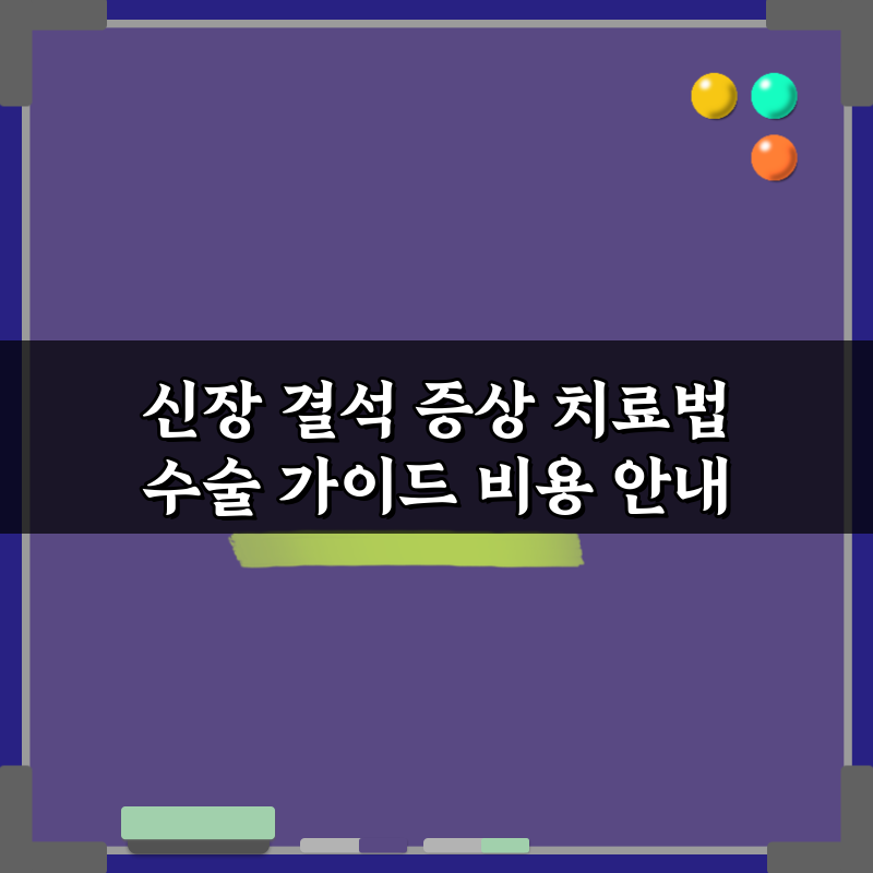 신장 결석 증상 치료법 수술 가이드 비용 안내 2026년 02월 08일 작성자: 인포 신장 결석의 증상, 치료법, 수술 방법과 비용에 대한 종합 가이드를 제공합니다. 정확한 정보로 신장 결석을 효과적으로 관리하세요!