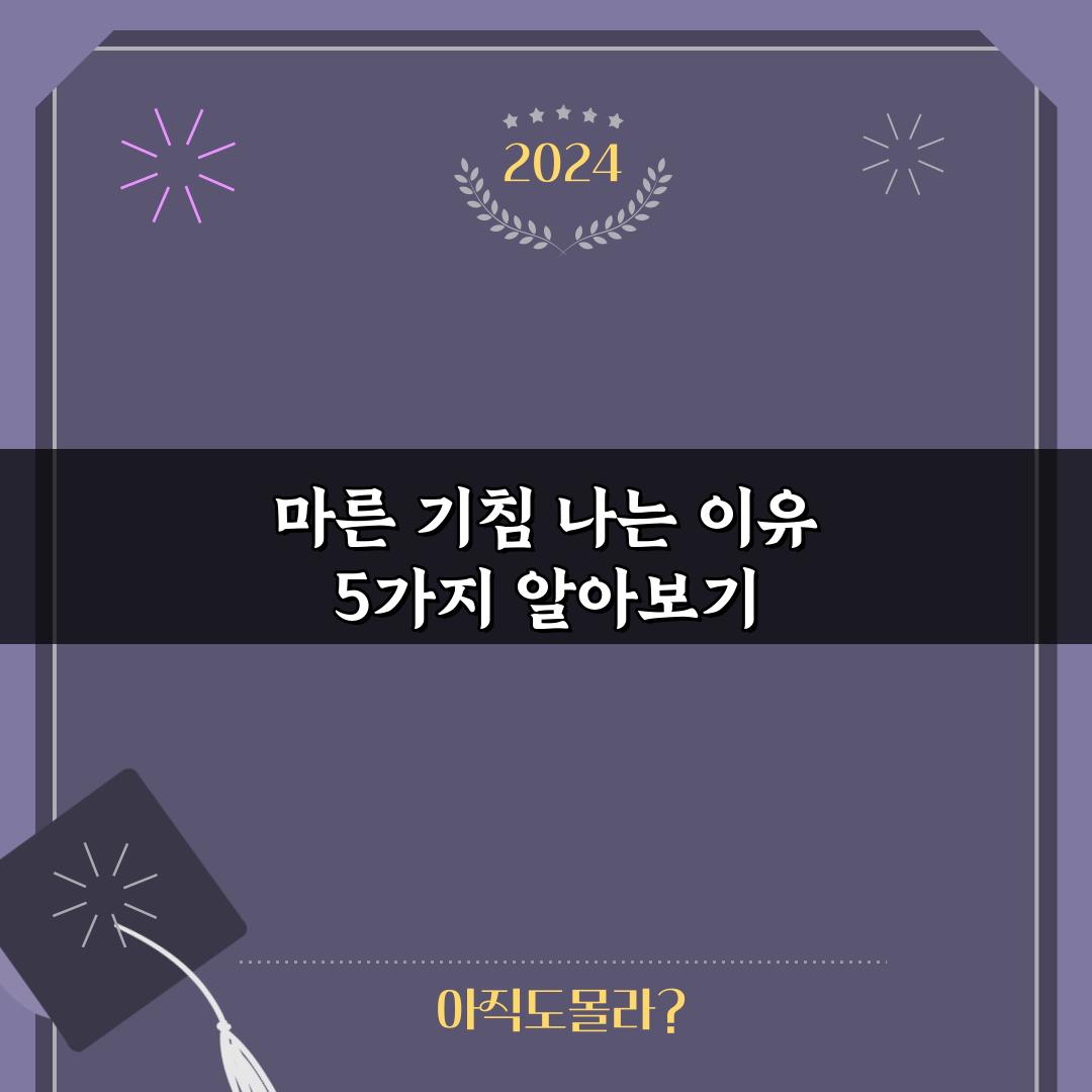 마른 기침 나는 이유 5가지 알아보기 2026년 02월 08일 작성자: 인포 마른 기침의 원인을 알고 싶으신가요? 이번 글에서는 마른 기침이 발생하는 5가지 이유를 자세히 알아보고, 효과적인 대처 방법을 제시합니다. 클릭해 보세요!