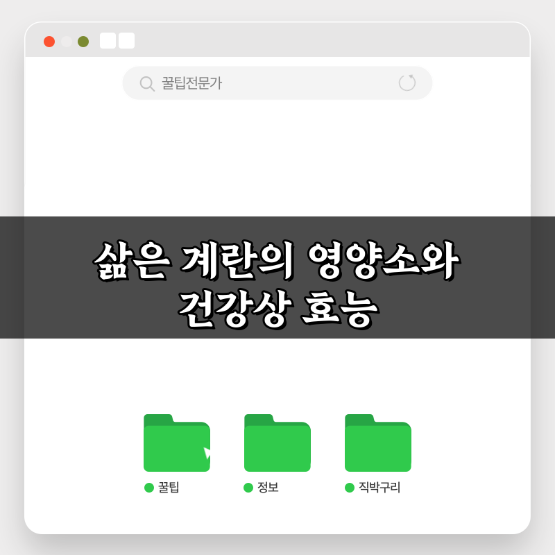 삶은 계란의 영양소와 건강상 효능 2026년 02월 08일 작성자: 인포 삶은 계란은 단백질, 비타민, 미네랄이 풍부하여 건강에 많은 이점을 제공합니다. 영양소와 효능을 알아보세요!