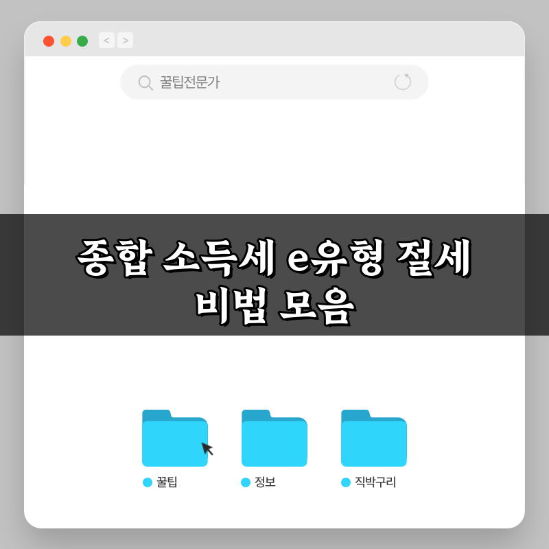 종합 소득세 e유형 절세 비법을 한눈에 확인하세요! 실질적인 절세 팁과 전략으로 세금 부담을 줄이는 방법을 소개합니다. 지금 바로 클릭해 보세요!