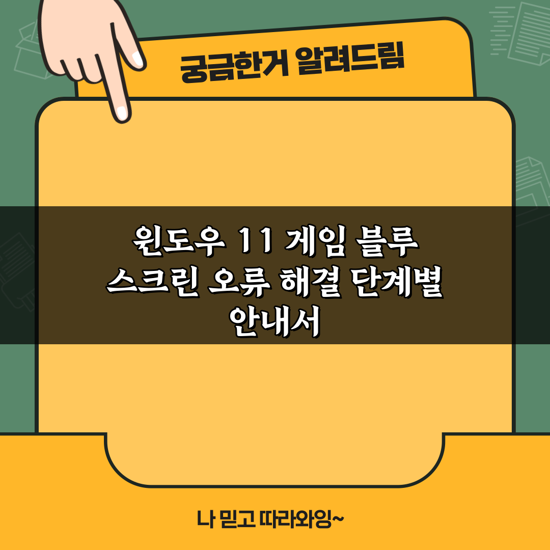 윈도우 11 게임 블루 스크린 오류 해결 단계별 안내서 2026년 02월 08일 작성자: 인포 윈도우 11에서 게임 중 발생하는 블루 스크린 오류를 해결하는 단계별 안내서를 제공합니다. 간단한 방법으로 문제를 신속하게 해결하세요!
