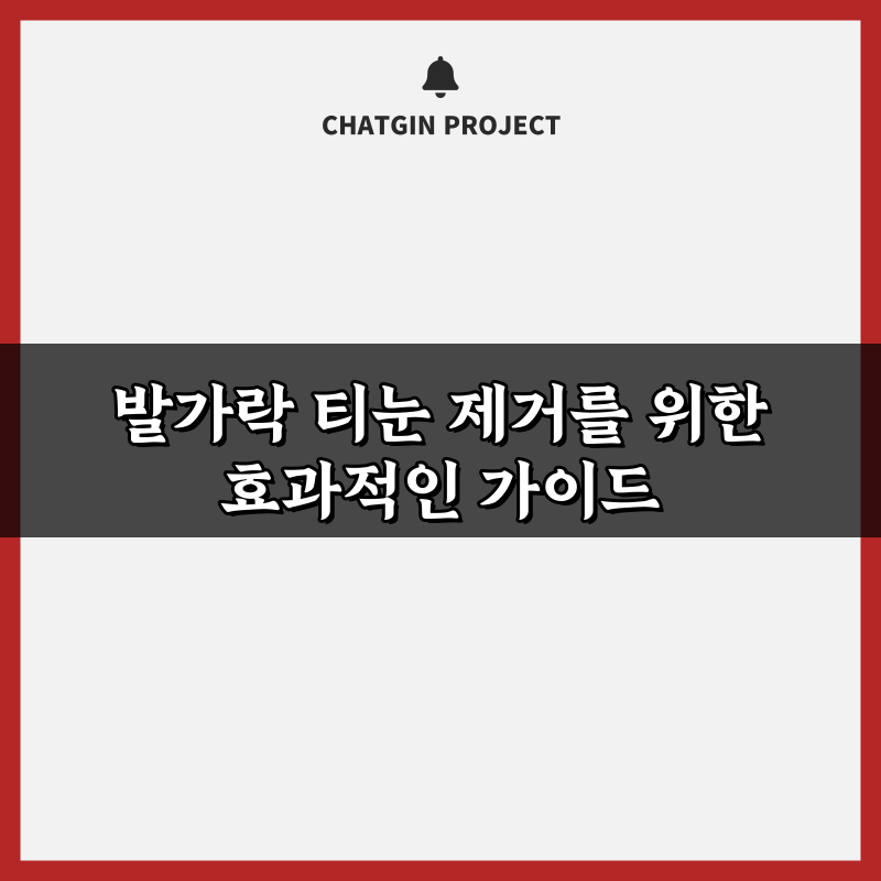 발가락 티눈 제거를 위한 효과적인 가이드 2026년 02월 08일 작성자: 인포 발가락 티눈 제거를 위한 효과적인 가이드를 확인하세요. 간단한 방법과 팁으로 통증을 줄이고 건강한 발을 되찾으세요!