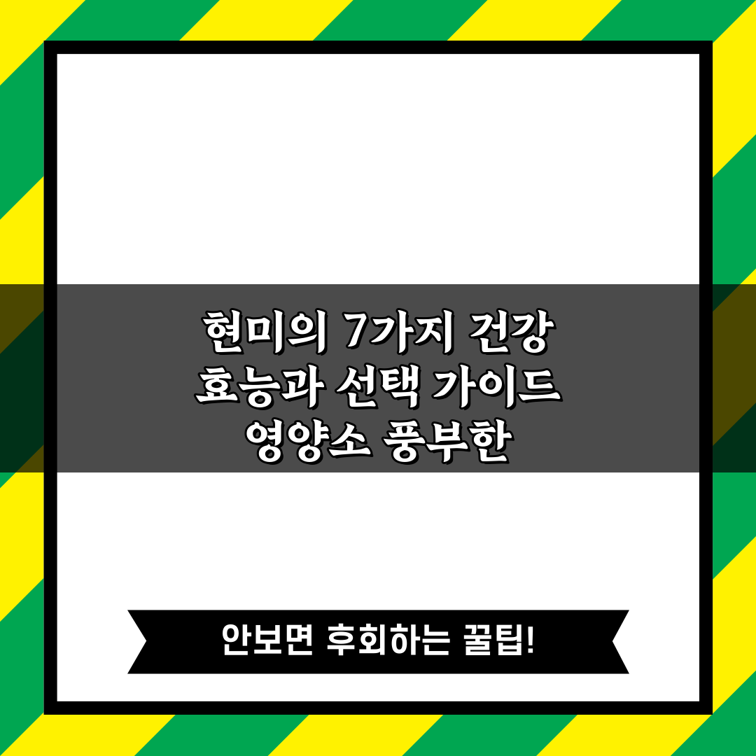 현미의 7가지 건강 효능과 선택 가이드를 통해 영양소가 풍부한 현미의 이점과 올바른 선택법을 알아보세요! 건강한 식단을 위한 필수 정보가 가득합니다.