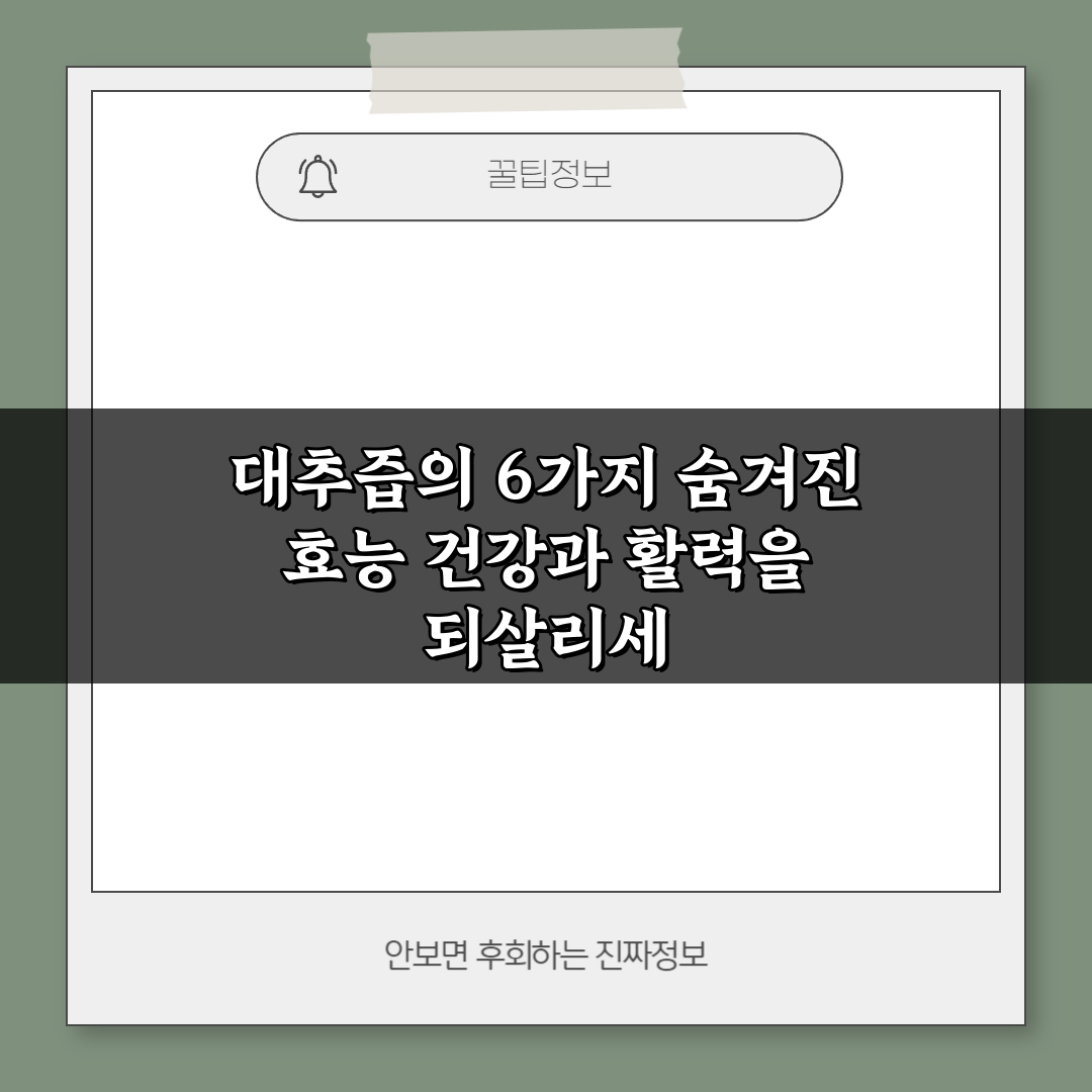 대추즙의 6가지 숨겨진 효능을 통해 건강과 활력을 되찾는 방법을 알아보세요. 자연의 힘으로 몸과 마음을 rejuvenate하세요!