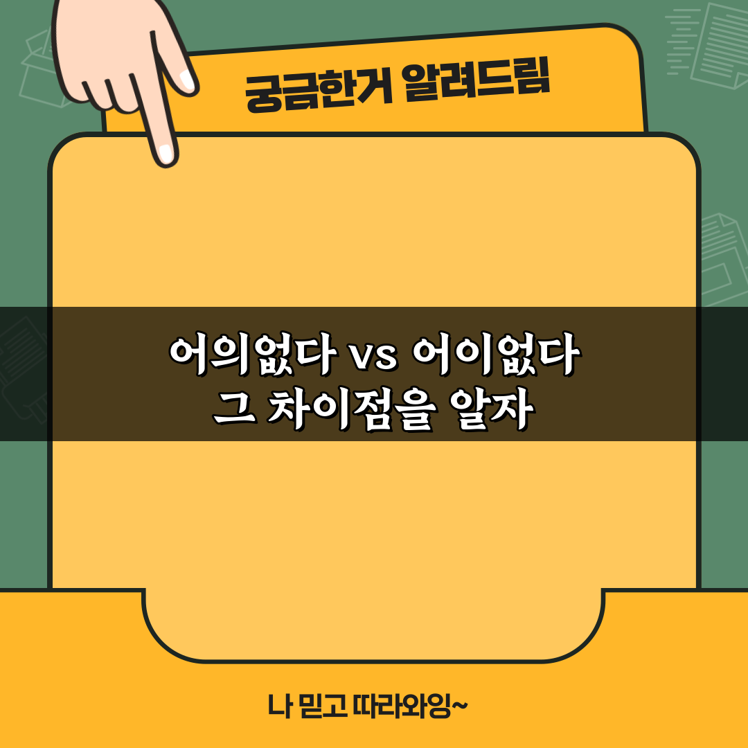 “어의없다 vs 어이없다”의 차이를 알아보세요! 두 표현의 정확한 의미와 사용법을 통해 언어의 미세한 뉘앙스를 이해하고, 올바른 표현을 구사해보세요.