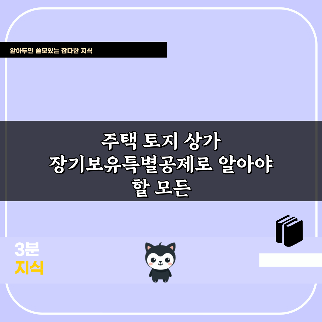 주택 토지 상가 장기보유특별공제로 알아야 할 모든 2026년 02월 08일 작성자: 인포 주택, 토지, 상가의 장기보유특별공제에 대한 모든 정보를 알아보세요. 절세 혜택과 조건, 신청 방법을 자세히 설명합니다. 클릭해 확인하세요!