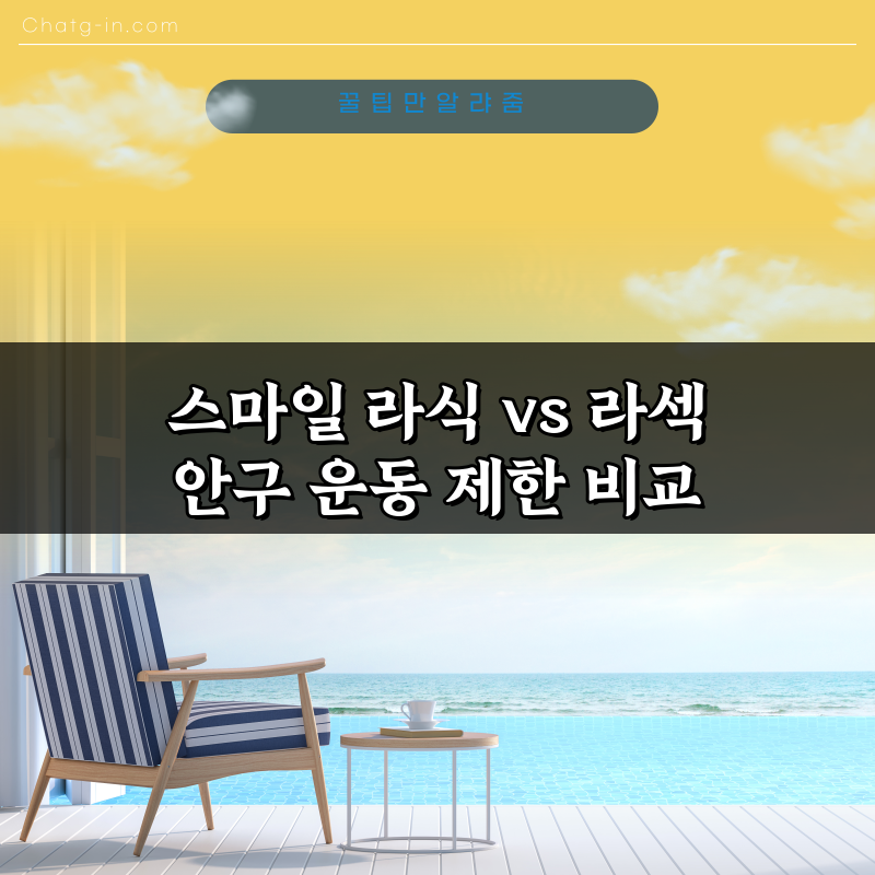 스마일 라식 vs 라섹 안구 운동 제한 비교 2026년 02월 08일 작성자: 인포 스마일 라식과 라섹의 안구 운동 제한을 비교하여, 각 수술의 장점과 단점을 명확히 알아보세요. 올바른 선택으로 시력을 개선하세요!