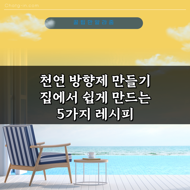천연 방향제 만들기 집에서 쉽게 만드는 5가지 레시피 2026년 02월 08일 작성자: 인포 집에서 쉽게 만들 수 있는 천연 방향제 5가지 레시피를 소개합니다. 자연의 향기로 집안을 상쾌하게 채우세요!