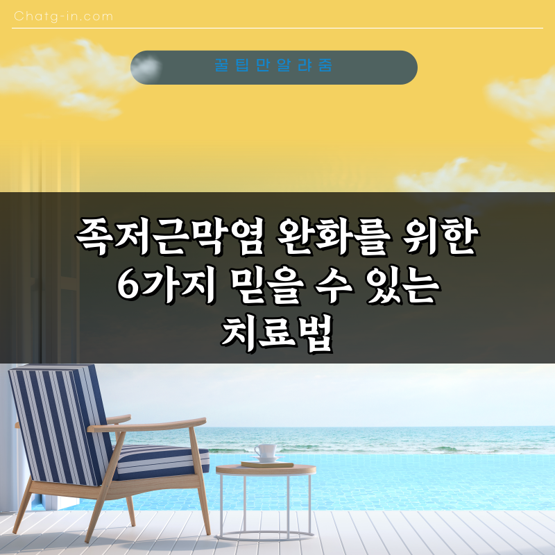 족저근막염 완화를 위한 6가지 믿을 수 있는 치료법 2026년 02월 08일 작성자: 인포 족저근막염으로 고통받고 계신가요? 이 글에서는 족저근막염 완화를 위한 6가지 믿을 수 있는 치료법을 소개합니다. 효과적인 관리 방법을 알아보세요!