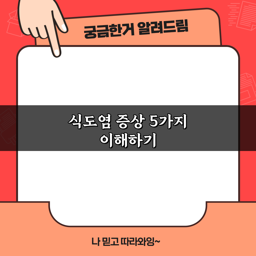 식도염 증상 5가지 이해하기 2026년 02월 08일 작성자: 인포 식도염 증상 5가지를 자세히 알아보세요. 통증, 불편함, 그리고 소화 문제까지, 이 글에서 식도염의 주요 증상을 이해하고 적절한 대처법을 찾으세요!