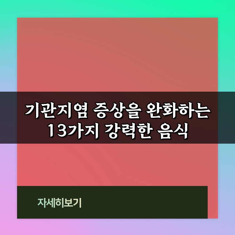 기관지염 증상을 완화하는 13가지 강력한 음식 2026년 02월 08일 작성자: 인포 기관지염 증상을 완화하는 13가지 강력한 음식을 소개합니다. 자연의 힘으로 건강을 회복하세요! 클릭해 자세한 정보를 확인해보세요.