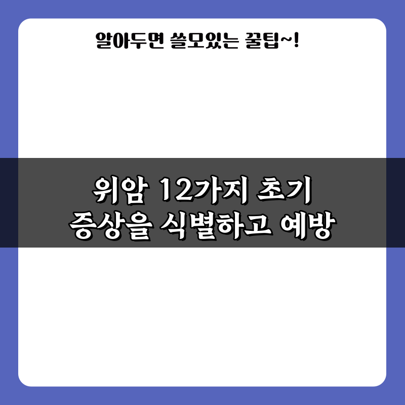 위암 12가지 초기 증상을 식별하고 예방 2026년 02월 08일 작성자: 인포 위암의 12가지 초기 증상을 알아보고, 조기 발견 및 예방 방법을 통해 건강을 지키세요. 지금 확인해보세요!
