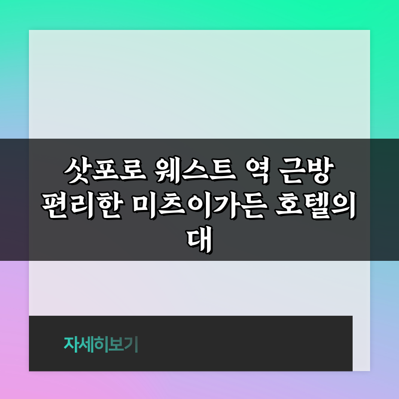 삿포로 웨스트 역 근방의 미츠이가든 호텔에서 편리함과 안락함을 경험하세요. 최적의 위치와 서비스를 제공하는 이곳에서 특별한 여행을 시작해보세요!