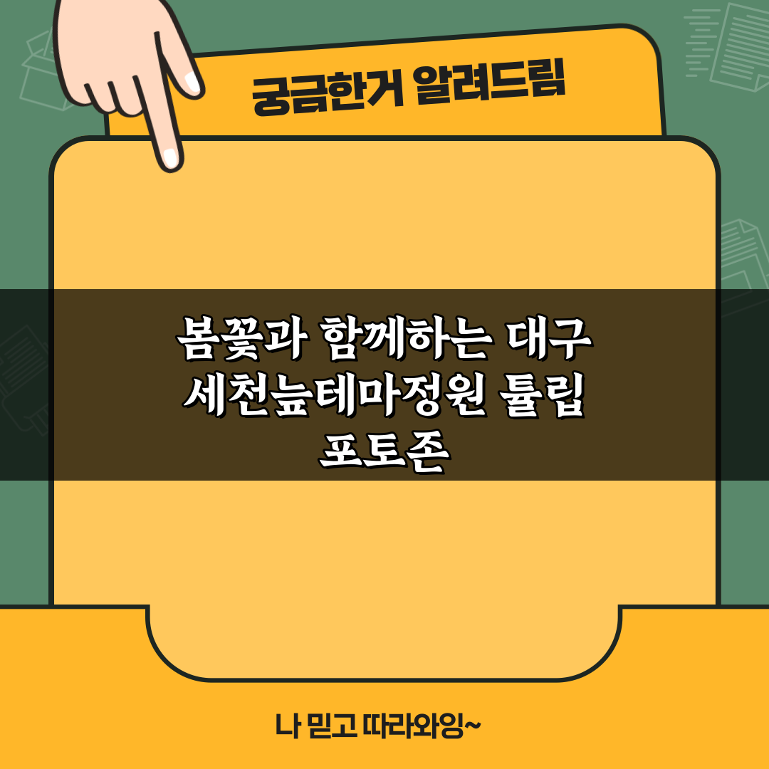 봄꽃과 함께하는 대구 세천늪테마정원에서 튤립 포토존을 만끽하세요! 화사한 튤립과 아름다운 풍경이 여러분을 기다립니다. 지금 방문해 특별한 순간을 담아보세요!