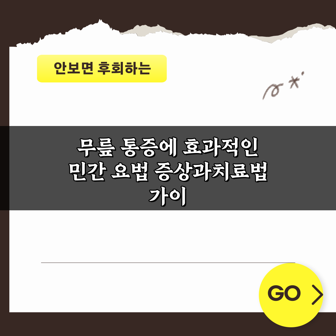 무릎 통증에 효과적인 민간 요법을 소개합니다. 증상과 치료법을 통해 자연스럽게 통증을 완화하고 건강한 무릎을 되찾아보세요! 클릭하여 자세한 정보를 확인하세요.