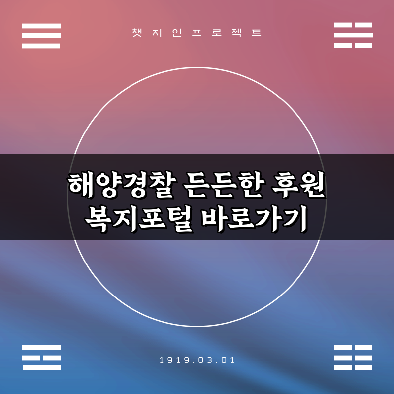 해양경찰 든든한 후원 복지포털 바로가기 2026년 02월 08일 작성자: 인포 해양경찰 든든한 후원 복지포털에 바로가기! 다양한 복지 혜택과 지원 정보를 확인하고, 안전하고 행복한 삶을 위한 첫걸음을 내딛으세요.