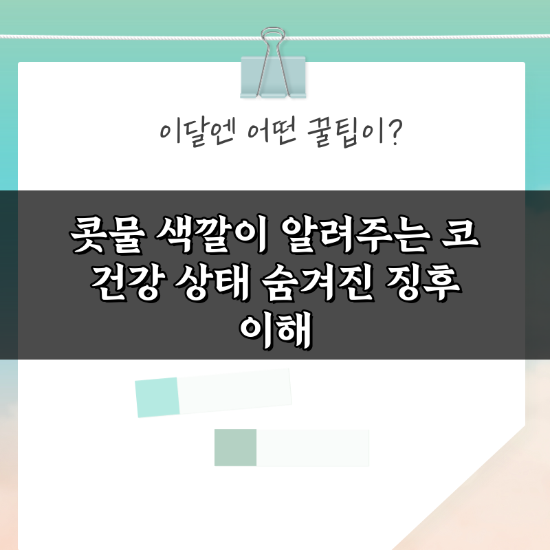 콧물 색깔이 알려주는 코 건강 상태 숨겨진 징후 이해 2026년 02월 08일 작성자: 인포 콧물 색깔은 코 건강의 중요한 지표입니다. 이 글에서는 콧물 색깔이 나타내는 숨겨진 징후를 이해하고, 건강 상태를 체크하는 방법을 알아봅니다. 클릭해 보세요!