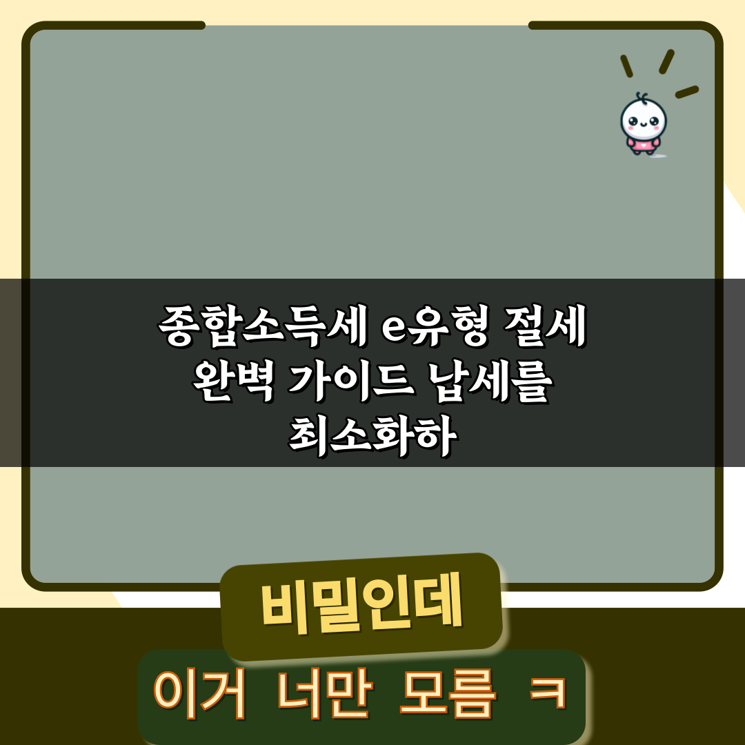 종합소득세 e유형 절세 완벽 가이드 납세를 최소화하 2026년 02월 08일 작성자: 인포 종합소득세 e유형을 활용한 절세 전략을 완벽히 안내합니다. 납세를 최소화하고 세금 부담을 줄이는 방법을 지금 확인하세요!