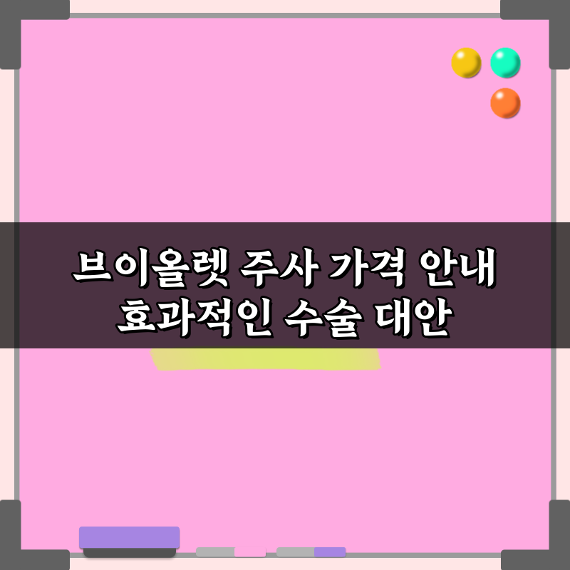 브이올렛 주사 가격 안내 효과적인 수술 대안 2026년 02월 08일 작성자: 인포 브이올렛 주사 가격과 효과적인 수술 대안에 대해 알아보세요. 저렴한 비용으로 아름다움을 되찾는 방법을 안내합니다!