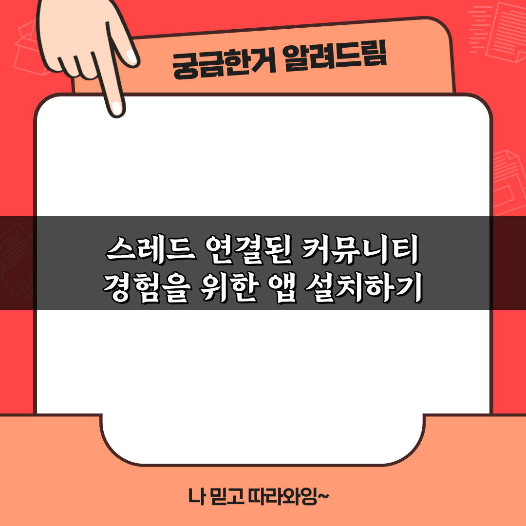 스레드 연결된 커뮤니티 경험을 위한 앱 설치하기 2026년 02월 08일 작성자: 인포 스레드 연결된 커뮤니티 경험을 위한 앱 설치 방법을 알아보세요. 쉽고 빠르게 커뮤니티와 소통하며 새로운 인연을 만날 기회를 제공합니다!