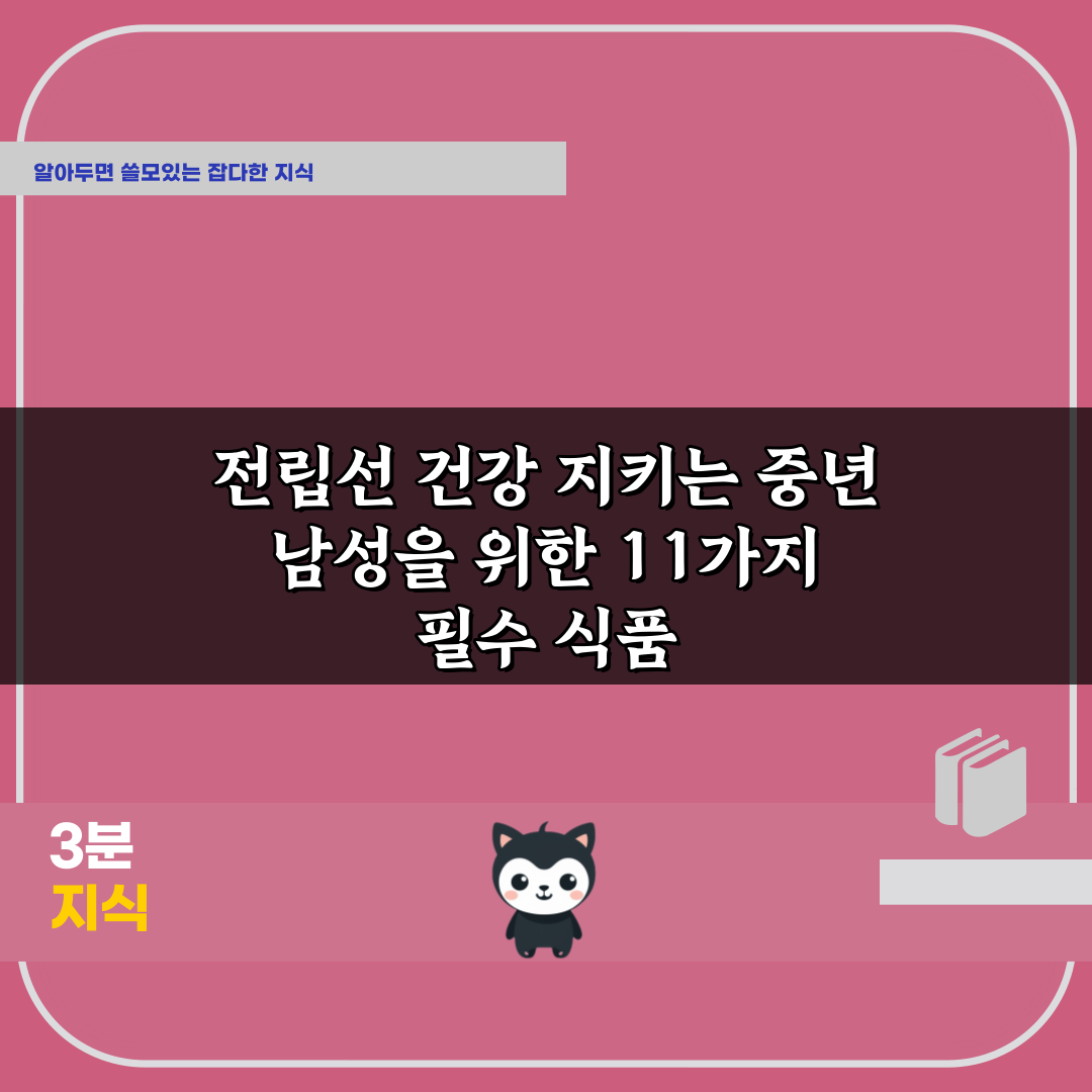 전립선 건강 지키는 중년 남성을 위한 11가지 필수 식품 2026년 02월 08일 작성자: 인포 중년 남성을 위한 전립선 건강을 지키는 11가지 필수 식품을 소개합니다. 건강한 식습관으로 활력 넘치는 삶을 누려보세요!