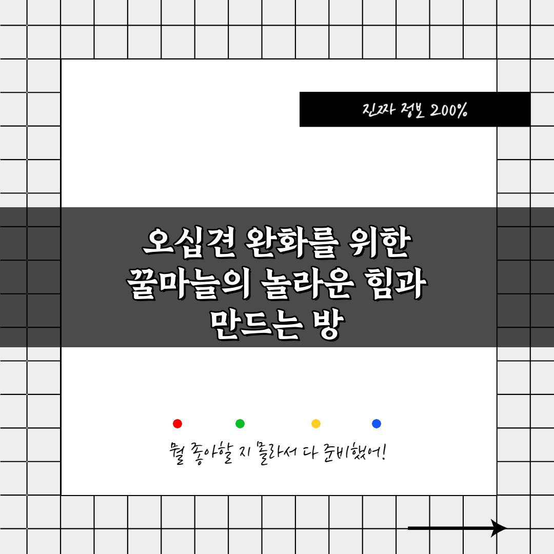 오십견 완화에 효과적인 꿀마늘의 놀라운 효능과 간편한 만들기 방법을 소개합니다. 건강한 삶을 위한 꿀마늘 레시피를 지금 확인해보세요!