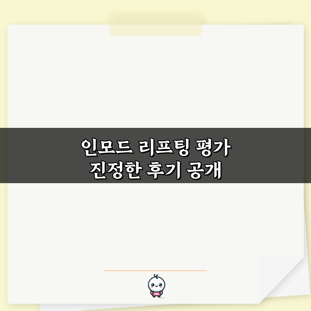 “인모드 리프팅 평가 진정한 후기 공개”에서는 실제 이용자들의 솔직한 경험담을 통해 인모드 리프팅의 효과와 장단점을 알아봅니다. 지금 확인해보세요!