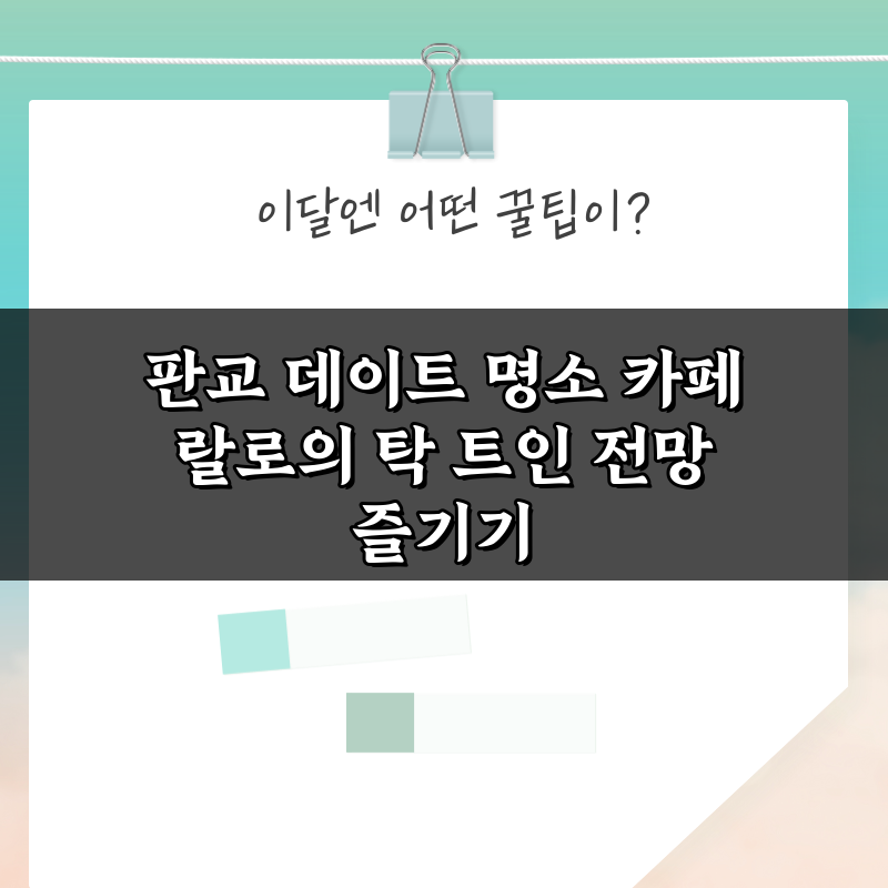 판교 데이트 명소 카페 랄로의 탁 트인 전망 즐기기 2026년 02월 07일 작성자: 인포 판교 데이트 명소 카페 랄로에서 탁 트인 전망을 즐기며 로맨틱한 시간을 보내세요. 특별한 순간을 만들어 줄 완벽한 장소입니다!