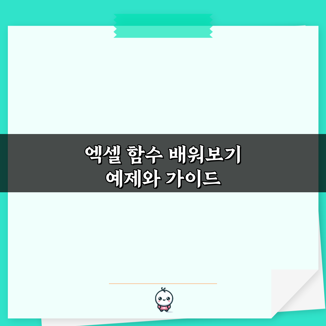 엑셀 함수 배워보기 예제와 가이드 2026년 02월 07일 작성자: 인포 엑셀 함수 배워보기 예제와 가이드로 다양한 함수 사용법을 쉽게 익혀보세요. 실용적인 예제와 팁으로 엑셀 실력을 한 단계 업그레이드하세요!